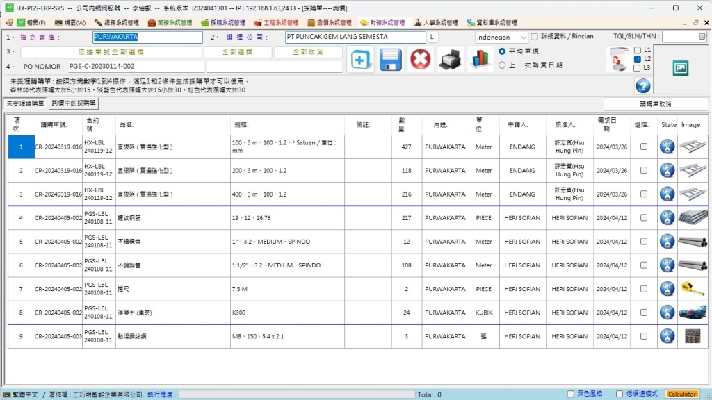 將未受理請購單內的品項選擇後,點擊此按鈕生成新的採購單。