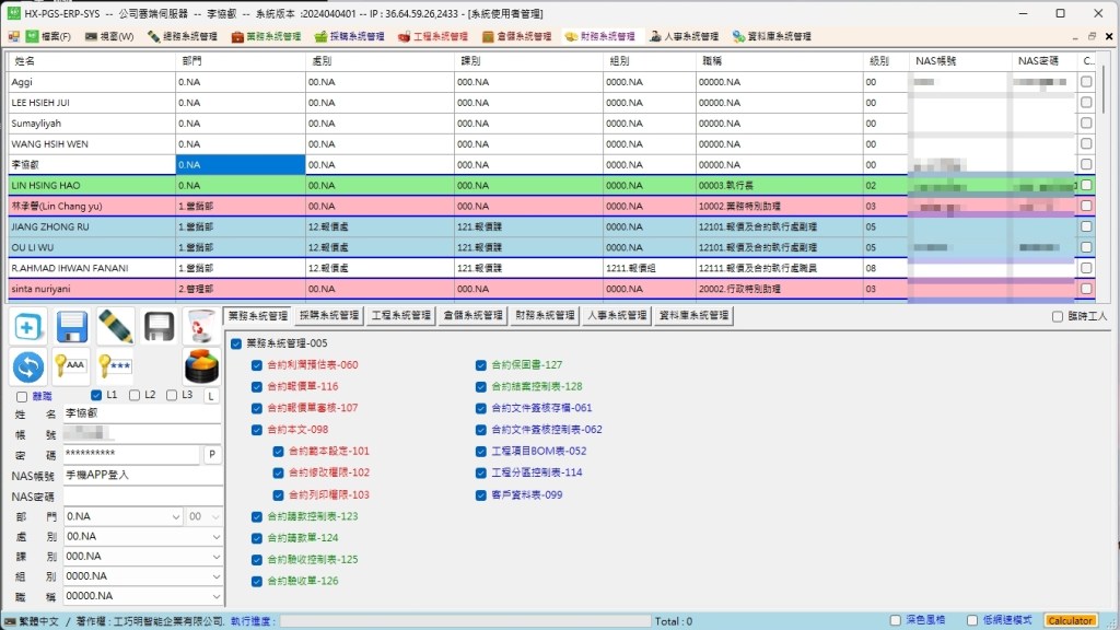 這個按鈕用來將目前選中的員工,依照該員工的職務帶入系統預設權限。